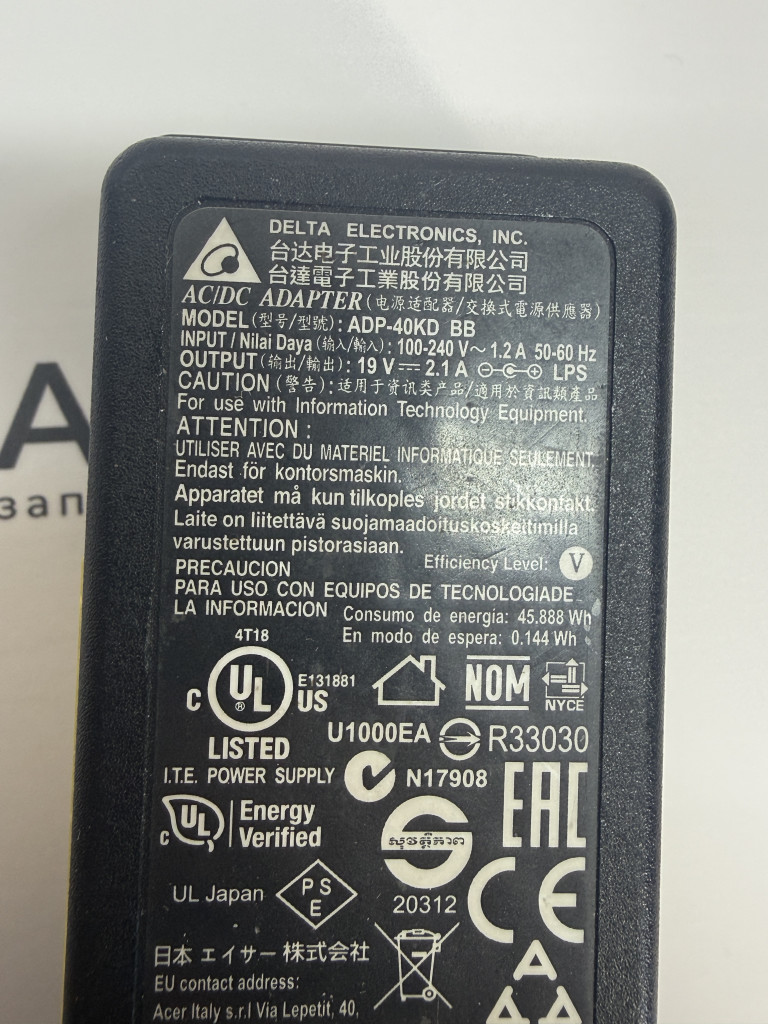 Зарядное устройство Delta ADP-40KD 19V 2.1A В рабочем состоянии, провод местами деформирован, на работу не влияет