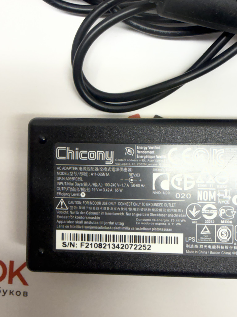 Зарядное устройство Chicony A11-065N1A В рабочем состоянии, без сетевого кабеля 19V 3.42A