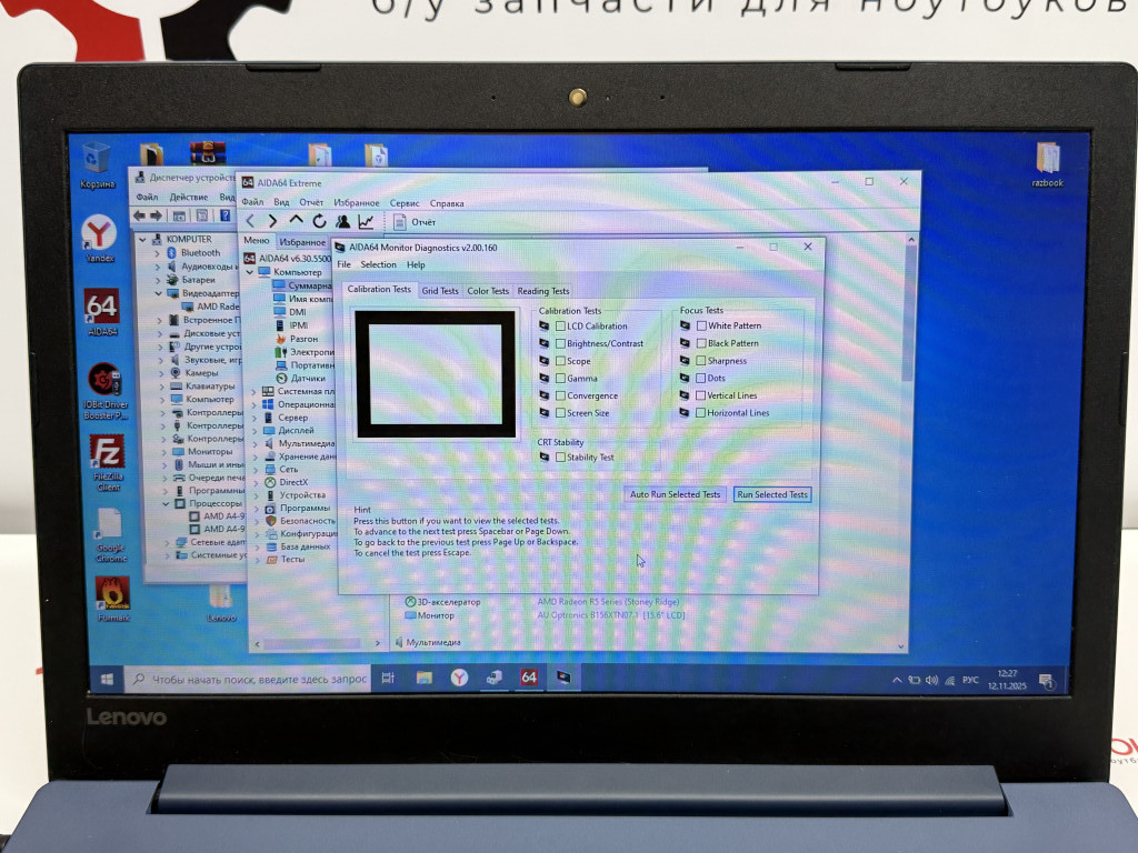 30pin Slim B156XTN07.1 В рабочем состоянии, еле заметный засвет(показан над курсором, на фото не передается), мелкие царапины